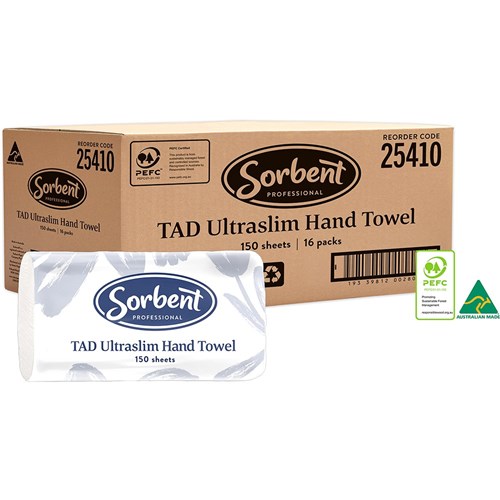 • Sorbent Professional TAD hand towels are ideal and cost-effective solution for high traffic washroom areas.