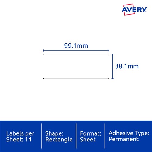 • Size: 99.1x38.1mm 350 labels, 25 sheets. 14 labels per sheet (14UP).