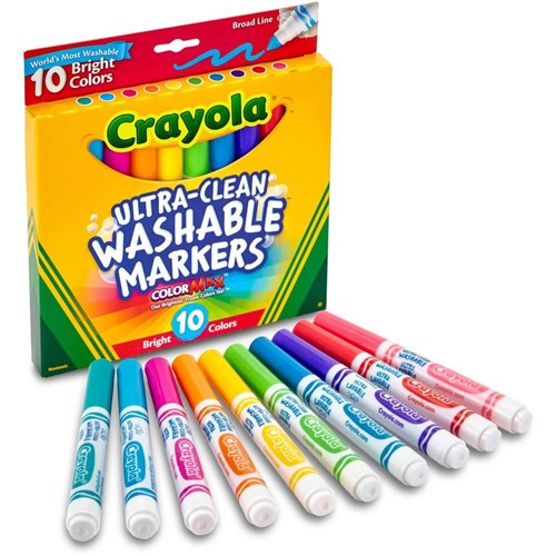 Crayola Ultra Clean Washable Broad Line Marker Bright Assorted Pack of 10