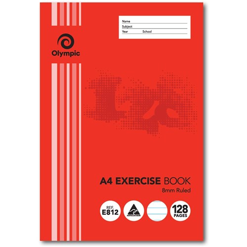 OLYMPIC EXERCISE BOOK A4 8mm Ruled 128 Pages Pack of 10