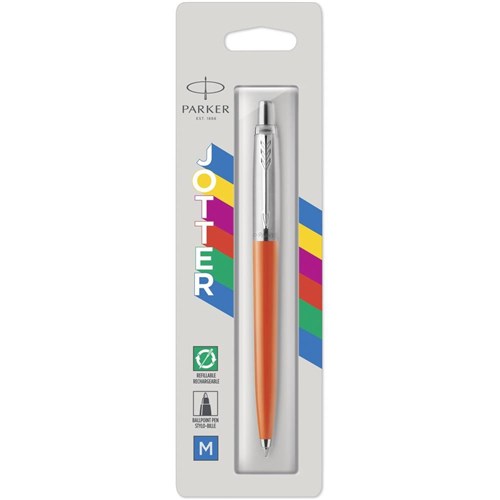 Parker Jotter Originals Ballpoint Pen Orange Barrel Stainless Clip Refill Blue