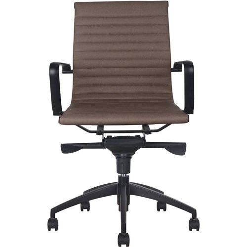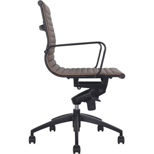 Rapidline PU605M Boardroom Chair Black Base And Arms Medium Back Tan Ribbed PU