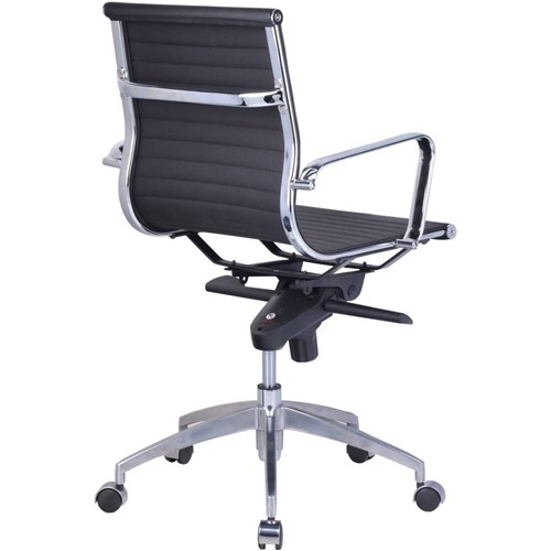 Rapidline PU605M Boardroom Chair Chrome Base And Arms Medium Back Black Ribbed PU