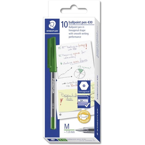 Staedtler 430 Stick Ballpoint Pen Medium 1mm Green BOX10