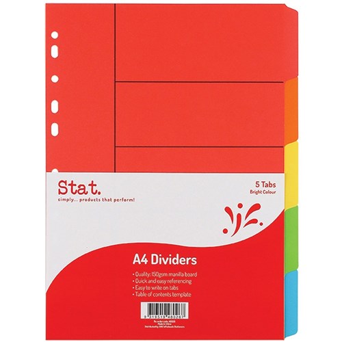 Stat Manilla Divider A4 5 Tab Bright Colours
